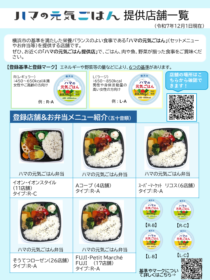 ハマの元気ごはん提供店登録店舗一覧(令和7年12月1日現在)(PDF:1,122KB)
