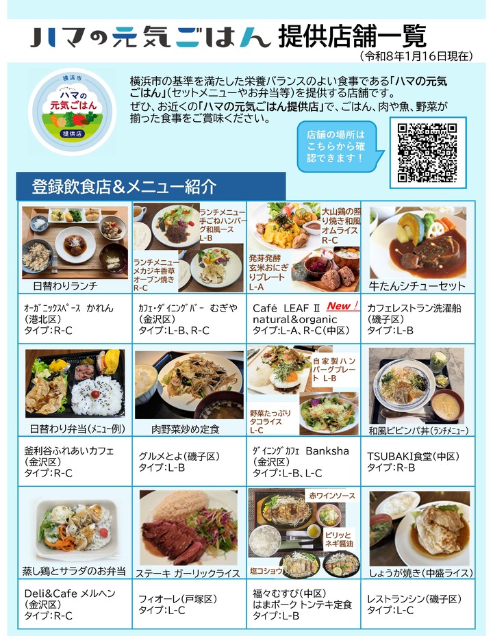 ハマの元気ごはん提供店登録店舗一覧(令和8年1月16日現在)(PDF:1,141KB)