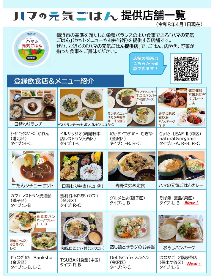 ハマの元気ごはん提供店登録店舗一覧(令和8年4月1日現在)(PDF:1,268KB)