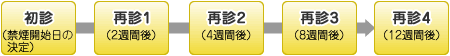 医師と相談して禁煙を開始日を決めます。初診から2週間後、4週間(1か月)後、