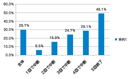 1回目で中断した人は6.5%しか禁煙を継続していなかったのに対し、5回を修了した人は49.1%が禁煙を継続していました。