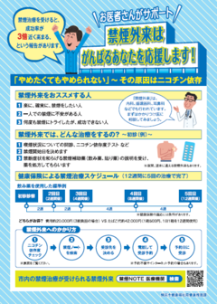 自分の力だけで禁煙することが難しい場合は、禁煙外来で医師に御相談することをお勧めします。