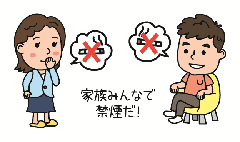 家庭は、お子さんやパートナーなど、同居家族が受動喫煙の影響を最も受けやすい場所です。同居家族やお子さんがいる場合は、家庭内での喫煙を控えるとともに、ぜひとも禁煙をお願いします。