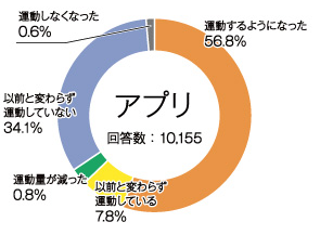 事業参加前に「運動していなかった」人のうち、歩数計・アプリともに約56%の人が参加後に運動するようになっています。