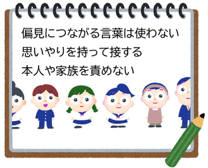 もしかすると、あなたが普段何気なく接している友人や同僚に、依存症に悩んでいる人がいるかもしれません。思いやりをもち、依存症に悩む本人やそのご家族が傷つく言葉を使わないよう接してもらえることは、誰もができる、とても大切なことです。
