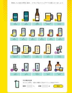 その他にも、厚生労働省が作成した「依存症の理解を深めるための普及啓発事業特設サイト」では、飲んだお酒の種類や量を選ぶと「純アルコール量」と「分解時間」が表示されます。