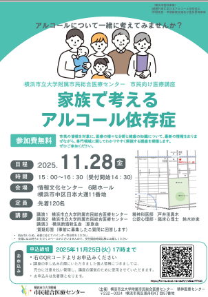 11月28日(金曜日) | 横浜情報文化センター6階 | テーマ:「家族で考えるアルコール依存症」 |
