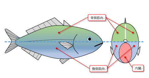 | 内臓 | 腹側筋肉 | 背側筋肉 | |||||