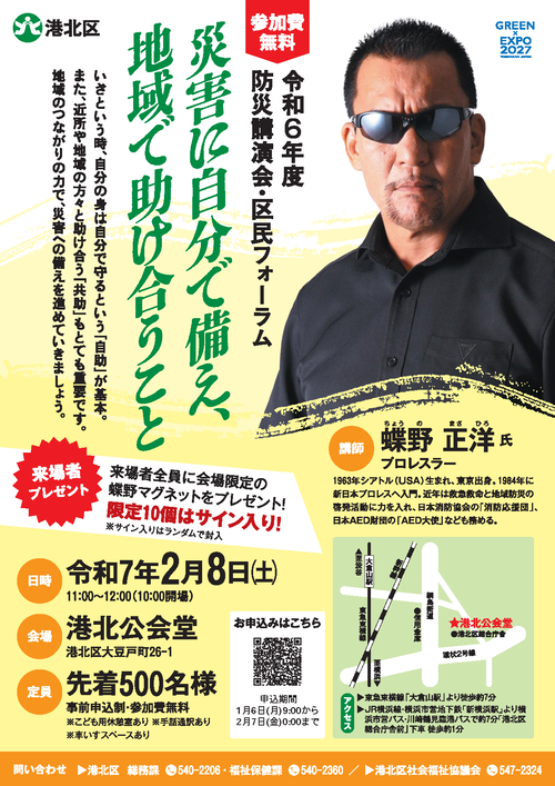 <URL>令和7年度港北区防災講演会 申込フォームはこちら(外部サイト)