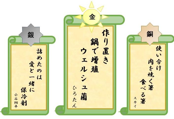 横浜市食中毒予防キャンペーンの一環として、食中毒に関する川柳の募集を広報し、多くの人に食中毒について関心を持ってもらうことを目的に実施しました。厳正な審査の結果、たくさんのご応募作品の中から金賞・銀賞・銅賞が決定しました。ご応募ありがとうございました。