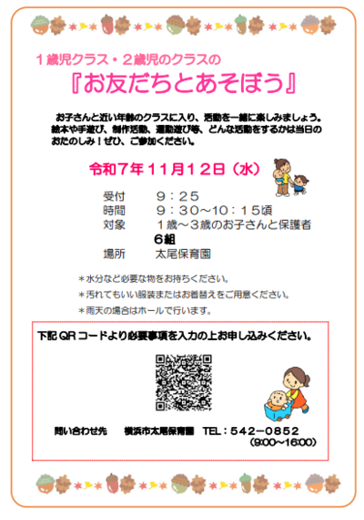 太尾保育園で取り組んでいる育児支援の情報やその他のトピックなどを不定期で掲載しています