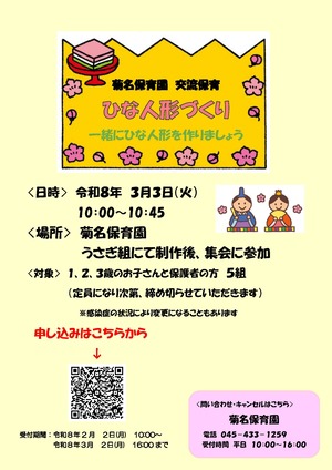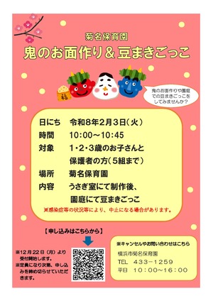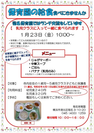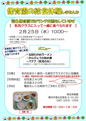菊名保育園 TEL:045-433-1259(平日10:00~16:00)