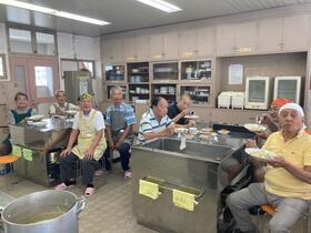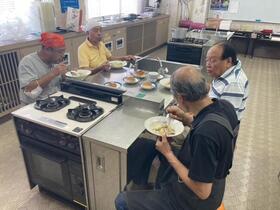 やすらぎ塾(※)は、「ひとりじゃ つまらん ともだちつくろう」をスローガンに、心と体の健康を維持することを目指しています。メンズキッチンは、60代~80代の男性が気軽に集える場として令和4年度に新たに立ち上がり、今回で3回目となりました。リーダーからは、さらにメンバーを増やして楽しみながら続けていきたいと抱負が語られました。