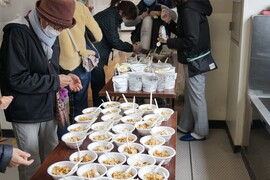 ※やすらぎ塾とは・・・地域福祉保健計画である「ひっとプラン港北」新吉田地区推進委員会の健康づくり部会の活動。やすらぎ塾内ではメンズキッチンの他にもウォーキング、健康麻雀等班ごとに活動をしている。
