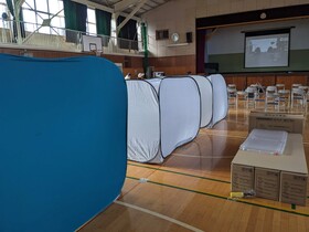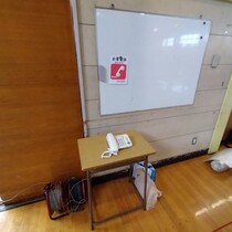 今日一日の楽しいプログラムはこの受付からスタート 。受付開始時間前にしっかりと準備OK