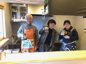 1階のカフェスペースではボランティアさんがコーヒーを淹れてくれます。