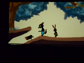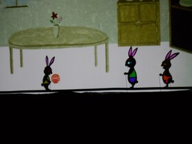 物語の世界に引き込まれるような美しい背景に、「貝の火」を持つ子ウサギ・ホモイが正義と優しい心を取り戻すまでが描かれ、子どもたちは夢中で見ていました。