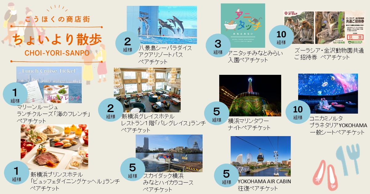 横浜を楽しめる賞品(観光施設やホテルのお食事券)をご用意しています!