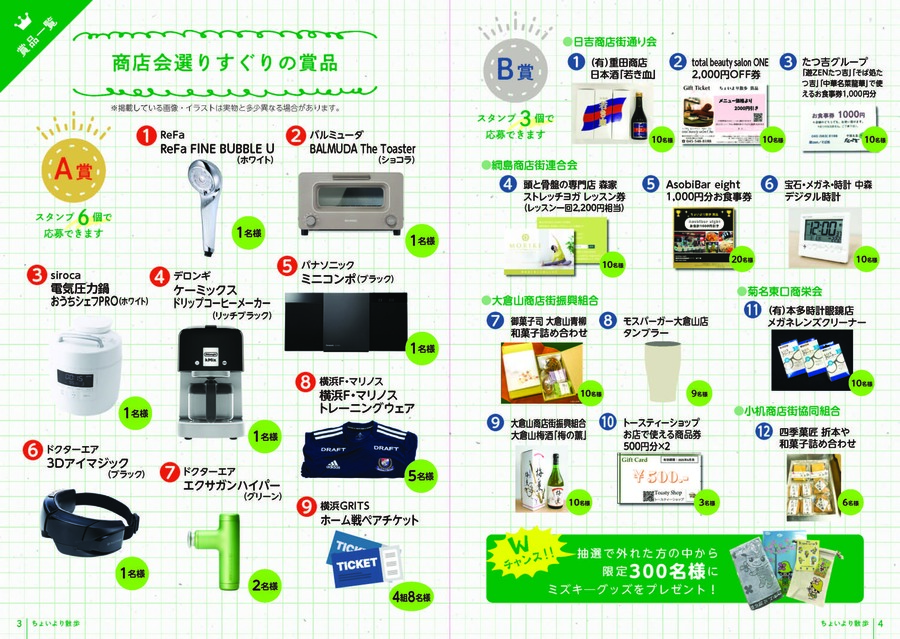 商店街ごとの参加店舗マップや、賞品等が掲載されています。
