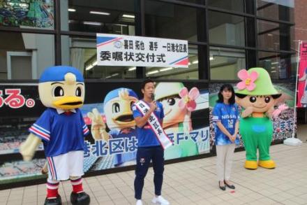 横浜F・マリノスのホームスタジアム「日産スタジアム」を有する港北区では、平成23年から横浜F.マリノスの選手に「一日港北区長」へ就任いただいています。