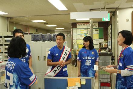 「区役所の仕事は本当に多岐に渡っていますね。皆さんがマリノスを応援してくださっているのを感じ、力をいただきました。」と一言。