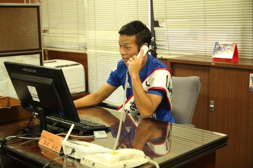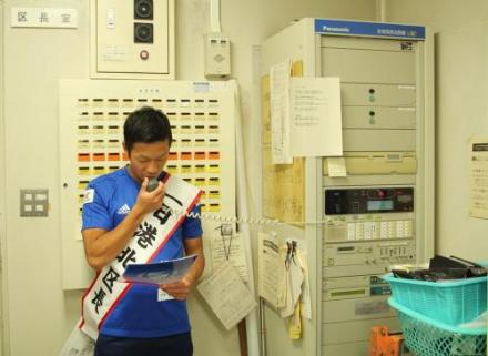 今年度も横浜F・マリノスのミッドフィルダーである喜田拓也(きだたくや)選手が、港北区の「一日区長」に就任し、来庁者のみなさまへのメッセージ放送など、港北区の盛り上げ役を務めていただきました。