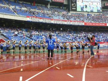 試合前にスタジアム内でマーチングバンド全国大会で8年連続金賞を受賞した太尾小学校マーチングバンドによる、横浜F・マリノスのサポーターズソング「We are F・Marinos」の演奏がありました。