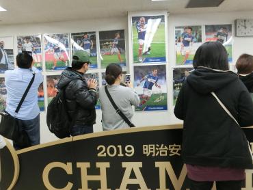 港北区をホームタウンとする横浜F・マリノスは、12月7日のホーム最終戦に勝利し、15年ぶり4回目のJ1リーグ優勝を決めました。横浜F・マリノスさんから港北区民の皆さまへのクリスマスプレゼントとして、12月24日と25日の2日間、Jリーグから授与されたシャーレと優勝トロフィーを区役所で展示しました。2日間で1300人を超える方に区役所にお越しいただき、大盛況でした。これからも港北区は横浜F・マリノスを応援します。