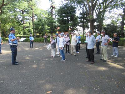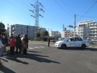 春と秋の「交通事故死ゼロを目指す日」に合わせ、道路を歩きながら信号や横断歩道を渡る際の注意点など、交通指導員の助言を得ながら交通安全の基礎的知識の確認を行ないます。港北区シルバーリーダー連絡協議会会員や地区の老人クラブ会員が参加します。