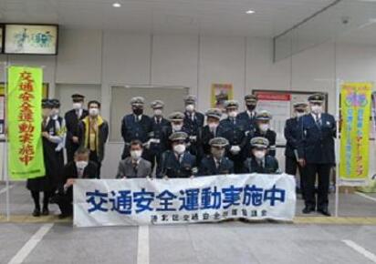 12月12日、日吉駅周辺で、交通安全関係団体や自治会・町内会の協力により、年末の交通事故防止運動キャンペーンを実施しました。