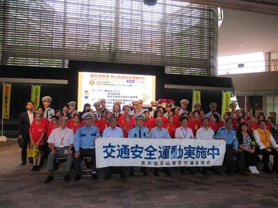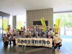交通安全関係団体の代表者と集合写真。ぽのちゃんも参加しました。