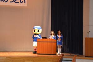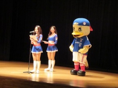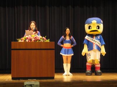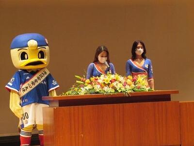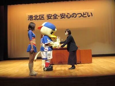最後に、今年Jリーグで優勝し、港北区を盛り上げてくれた横浜F・マリノスをお祝し、安全安心大使のマリノスケに花束を贈呈しました。