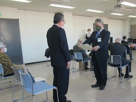 港北交通安全協会 嶋村代表理事から目録の贈呈