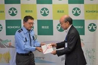 港北区は令和4年7月29日(金曜日)に、一般財団法人 港北交通安全協会様から区内児童の交通安全対策のため、現金の寄附をいただきました。