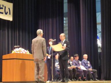 港北交通安全協会 嶋村代表理事から目録の贈呈。
