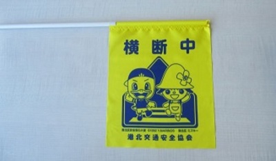 港北交通安全協会様から交通安全ベストと横断旗をいただきました