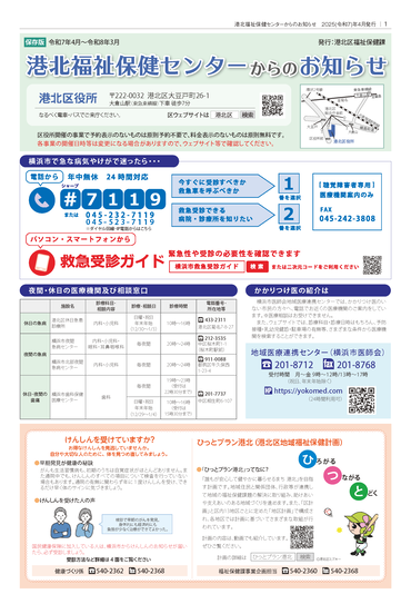 港北福祉保健センターで行われる事業のスケジュールや、福祉保健に関するサービス情報などをお知らせしています。