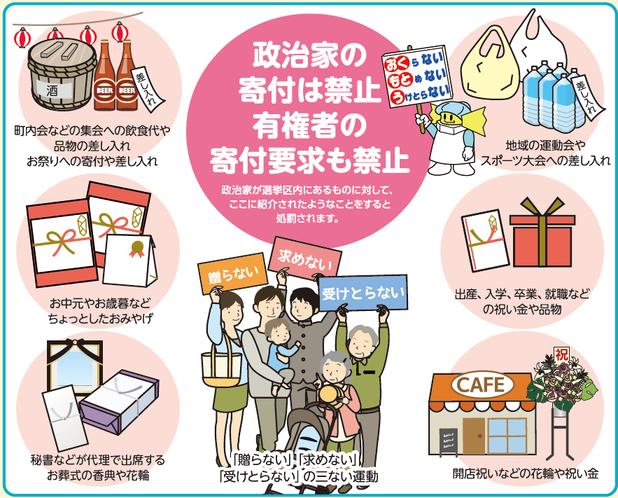 政治家の寄付は禁止。有権者が求めることも禁止。