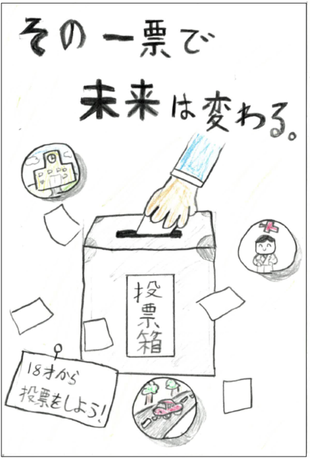 555点の応募作品の中から、入賞作品に選ばれた作品をご紹介します。作品からは、未来に向かって夢や希望をもって投票したいというメッセージが伝わってくるようです。たくさんのご応募、ありがとうございました。