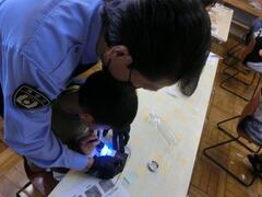 こども科学捜査体験講座では、「指紋鑑定」「血痕判定」「警察官装備品重量体験」「パトカー緊急走行体験」ができます。裳備品体験は写真撮影にて保護者と一緒にご参加できます。是非、人気№1の体験講座に親子でご参加ください!