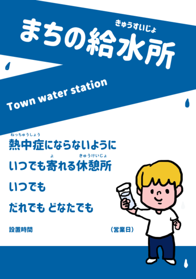 熱中症対策として、ほっと一息休憩する場所として、お近くを通りかかった際に「まちの給水所」をぜひ御利用ください。