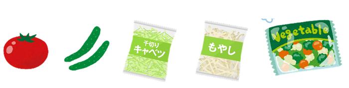 トマトやキュウリ、カット野菜、冷凍野菜など