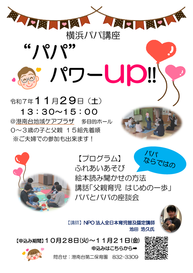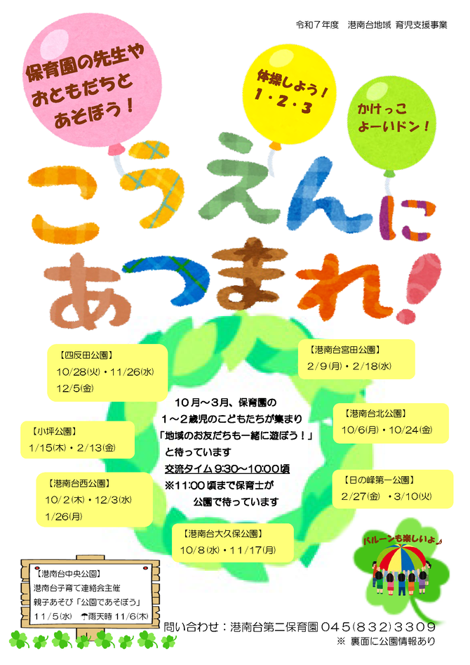 港南台第二保育園 電話:045-832-3309(育児支援専用電話)9:00~16:00