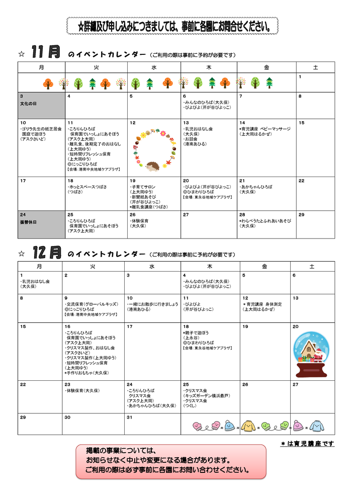 11月のイベントカレンダー