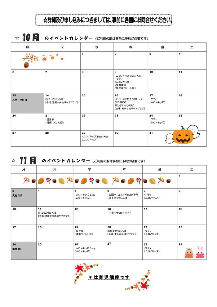 10月のイベントカレンダー