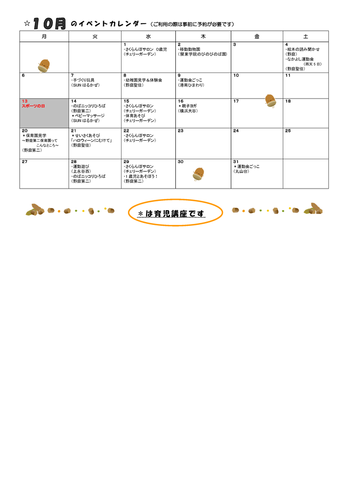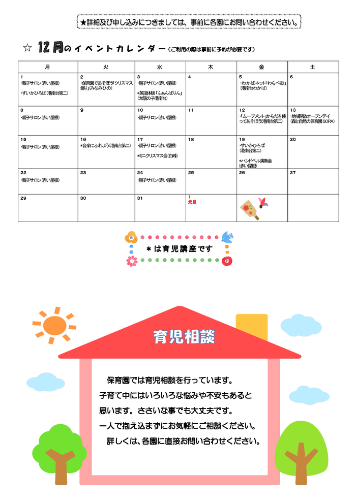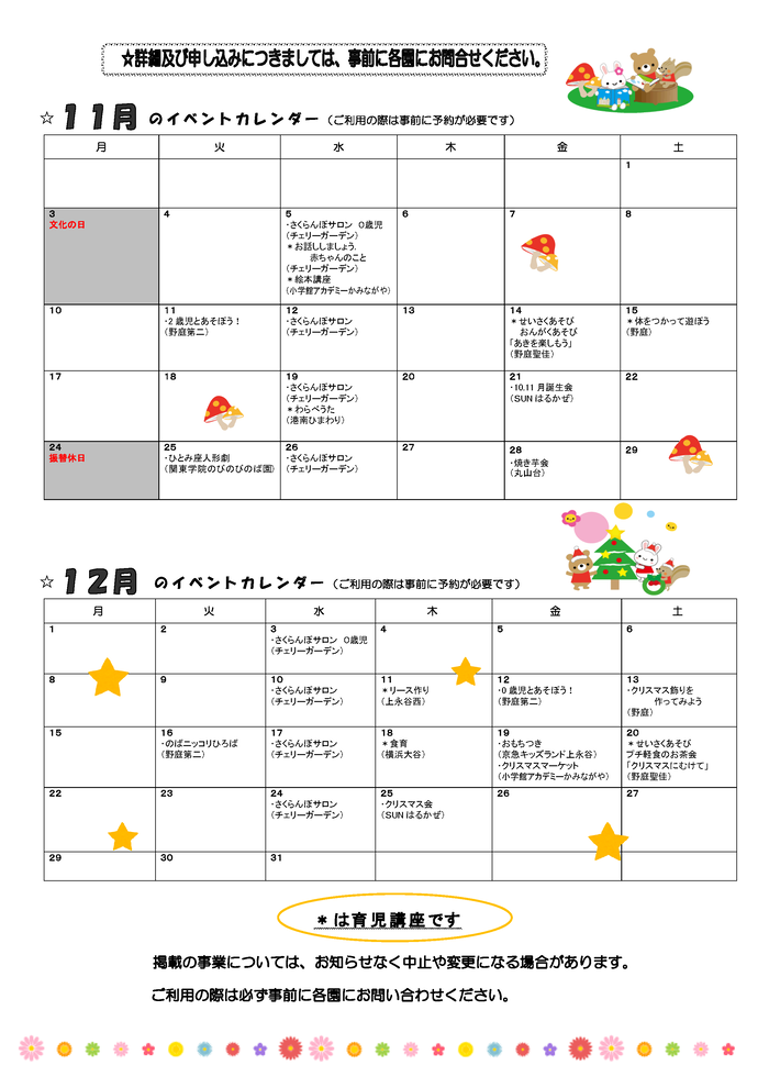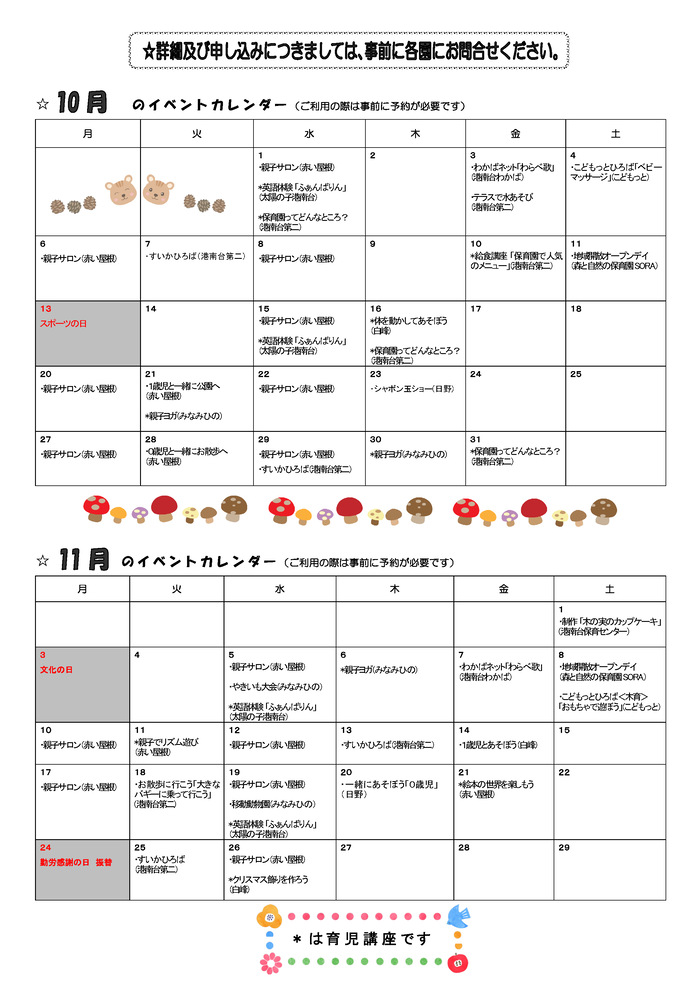 ()の中は園名です。*は育児講座です。