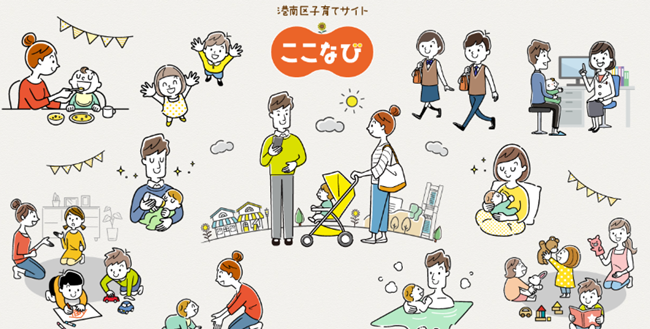 港南区では令和5年12月より、港南区子育てサイト「ここなび」により、港南区で子育てをする皆さんへ、