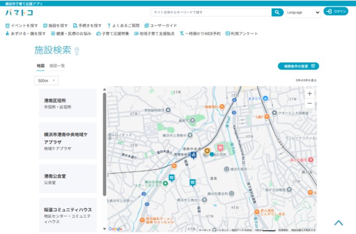 パマトコ「施設を探す」