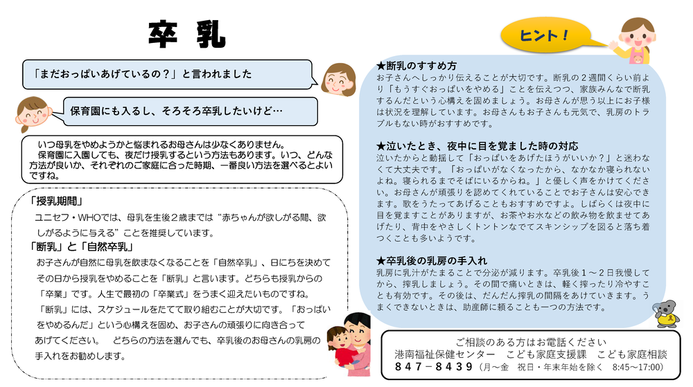 子育てコラムの9月号により詳しい内容が載っています。