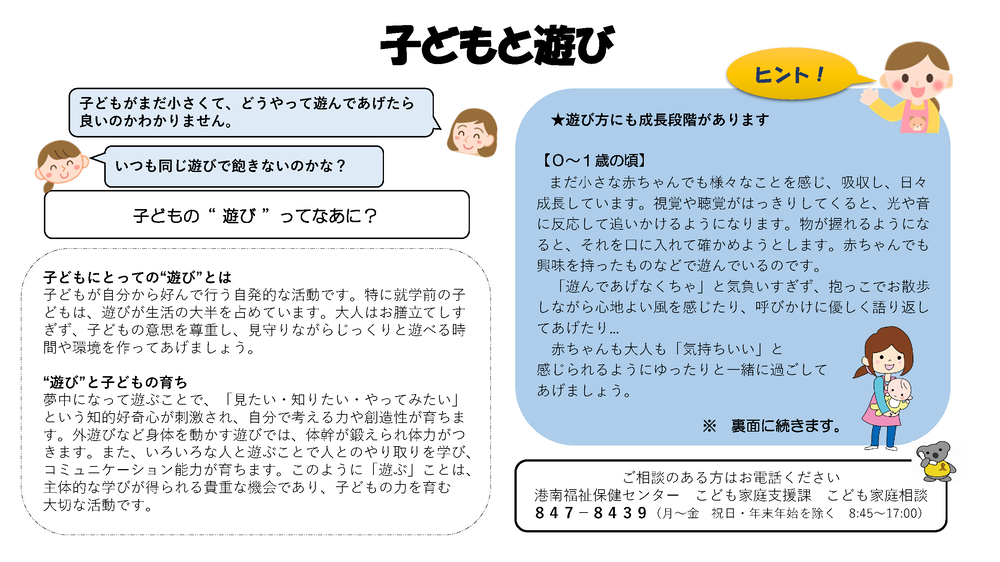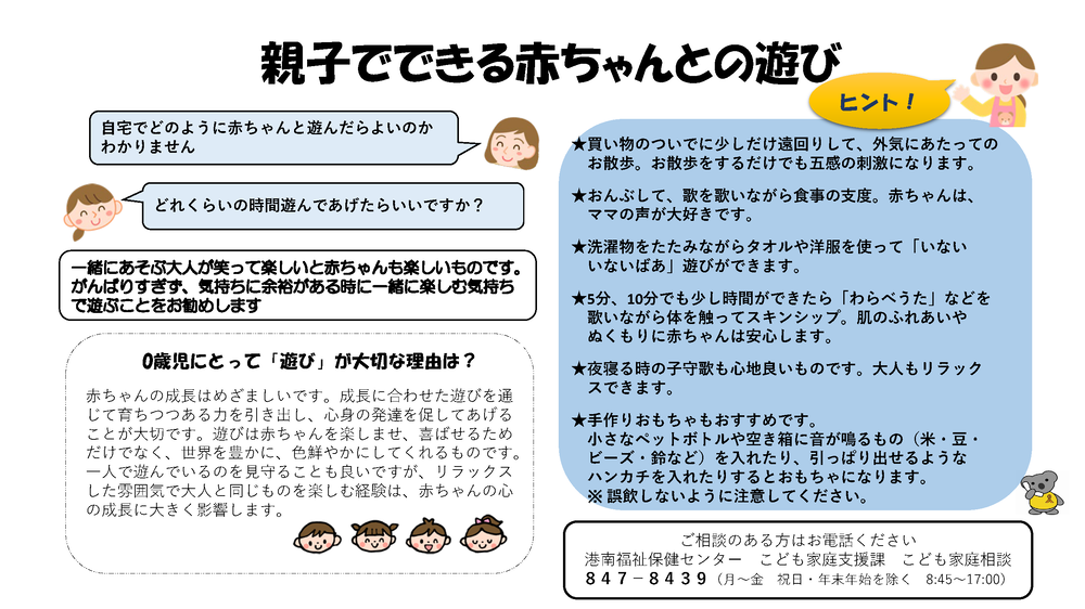 URL: あそびにきませんか(港南区育児支援事業) 横浜市港南区 (yokohama.lg.jp)